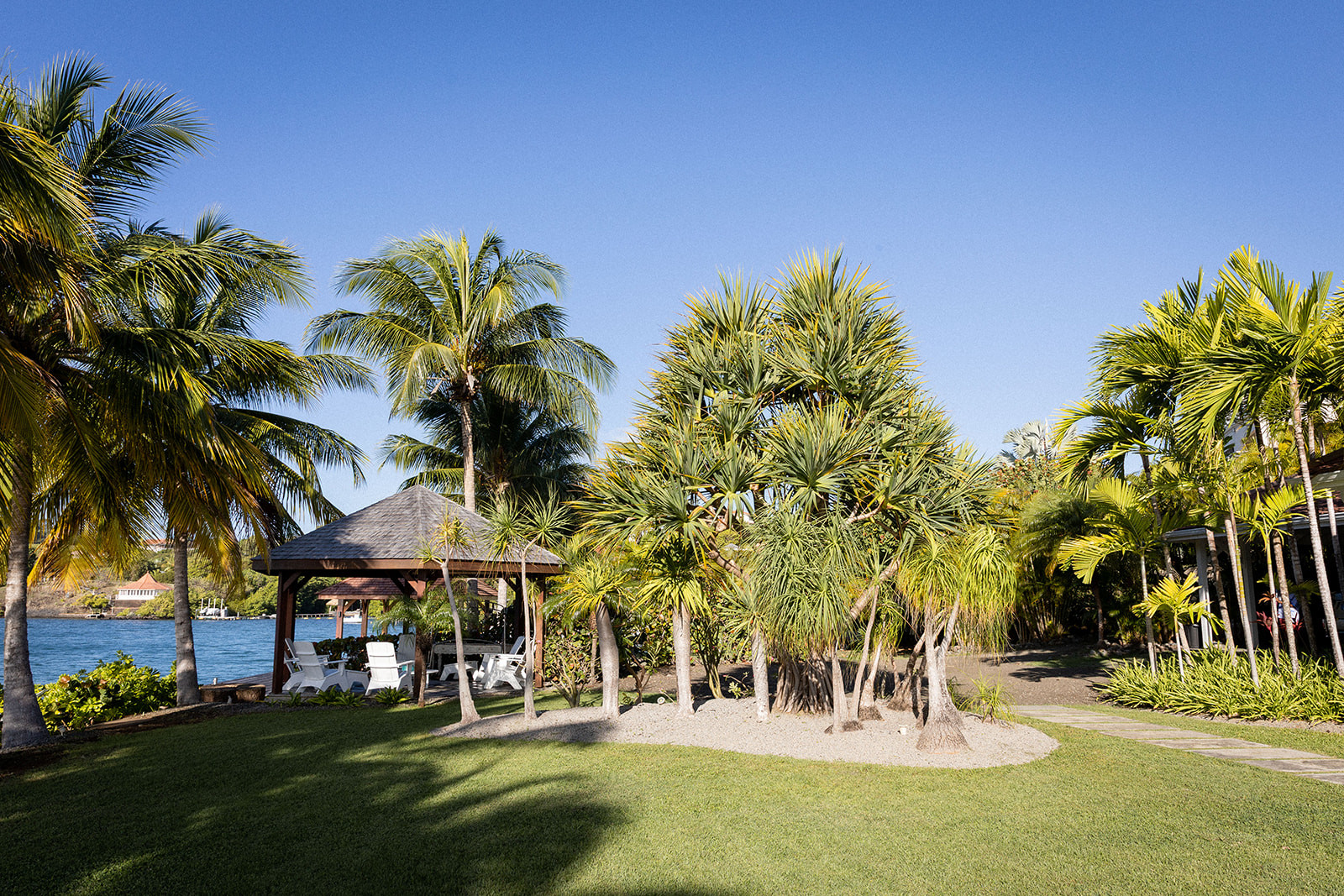 By the water's edge, there is a traditional gazebo, perfect for enjoying peaceful moments with family.